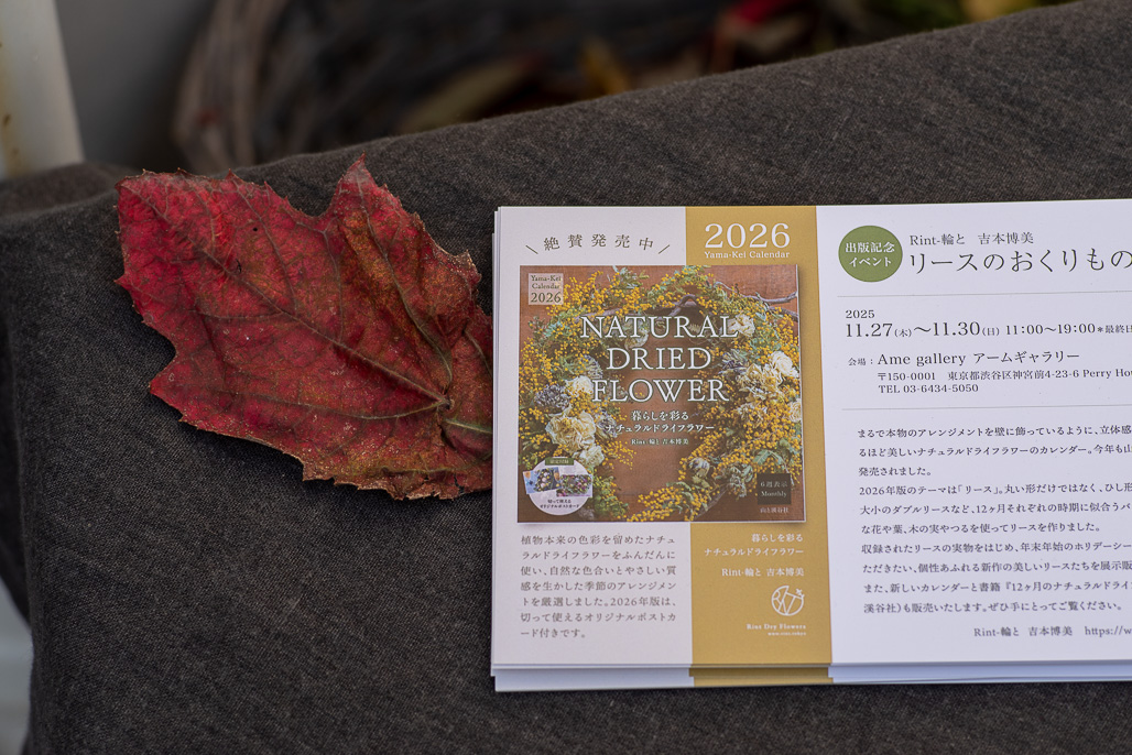 また、Rintオリジナルのカレンダーや、ナチュラルドライフラワーの本もお取り扱いしています。